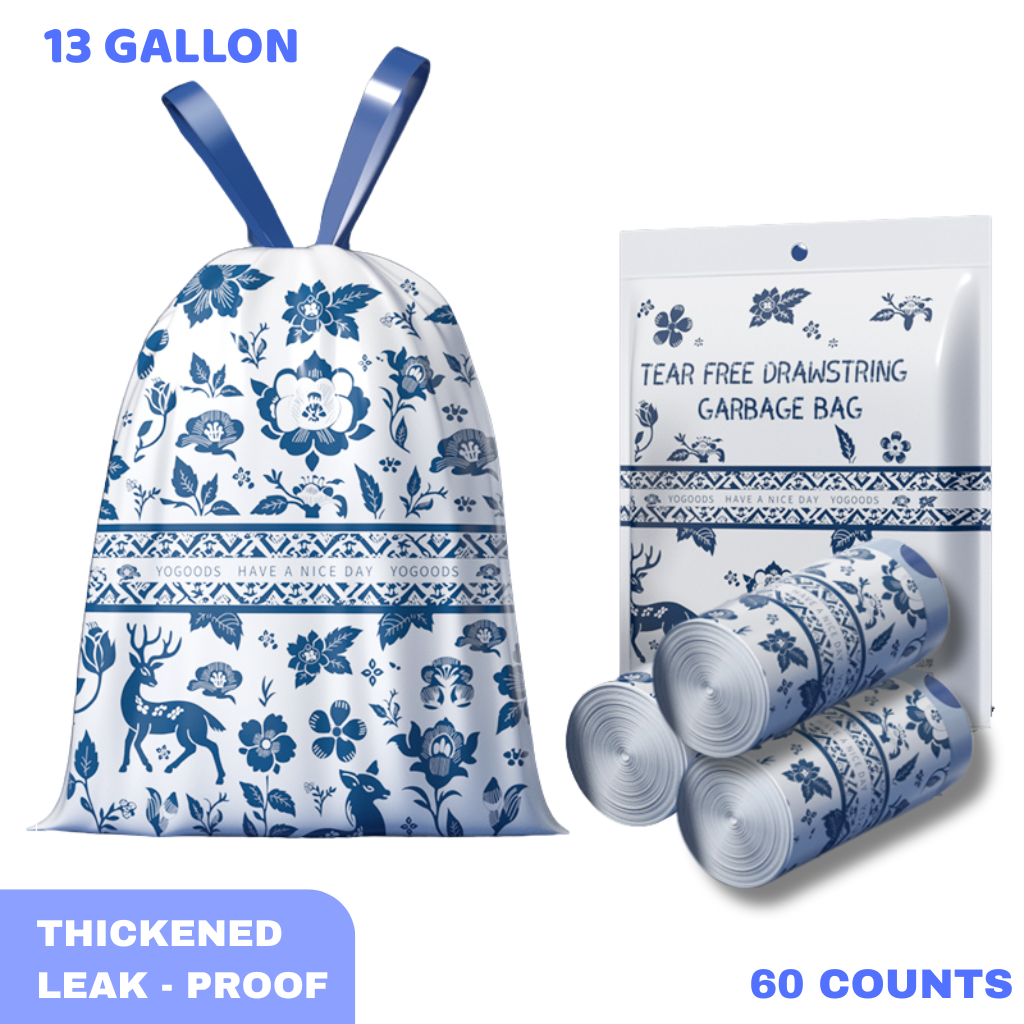 Tear Free Draw String Garbage Bag - 60 Counts